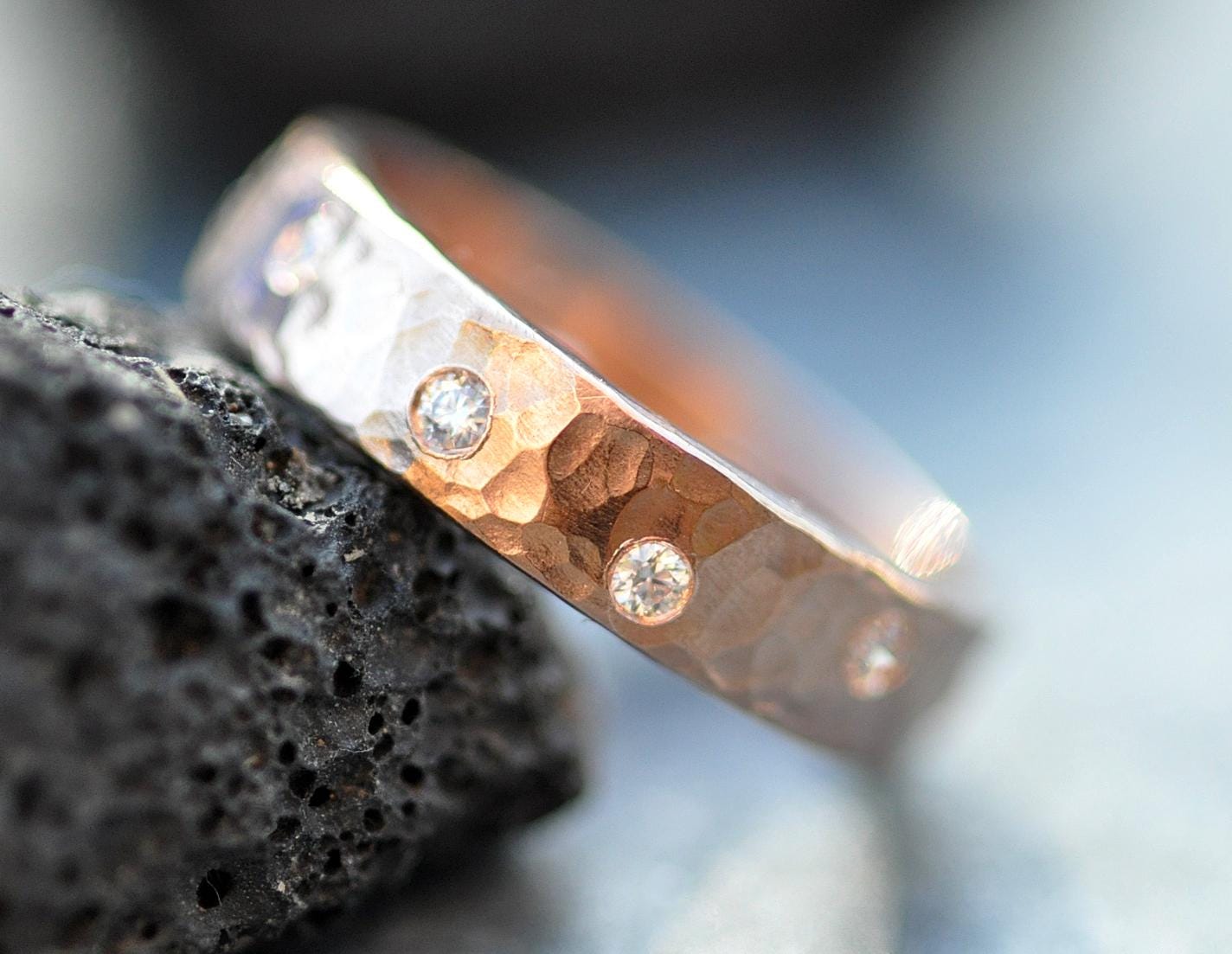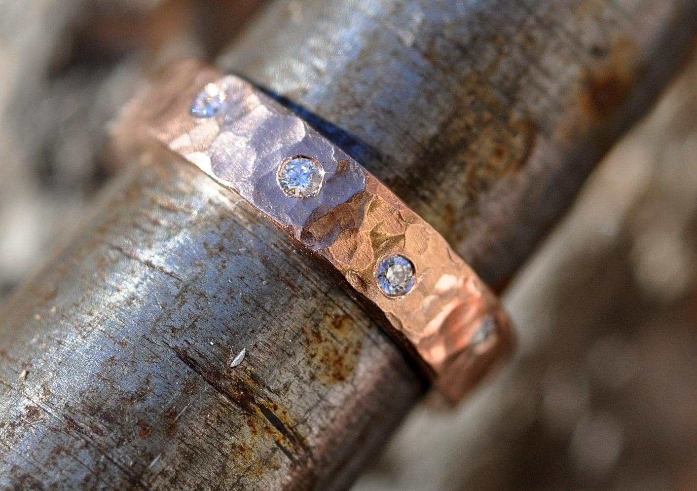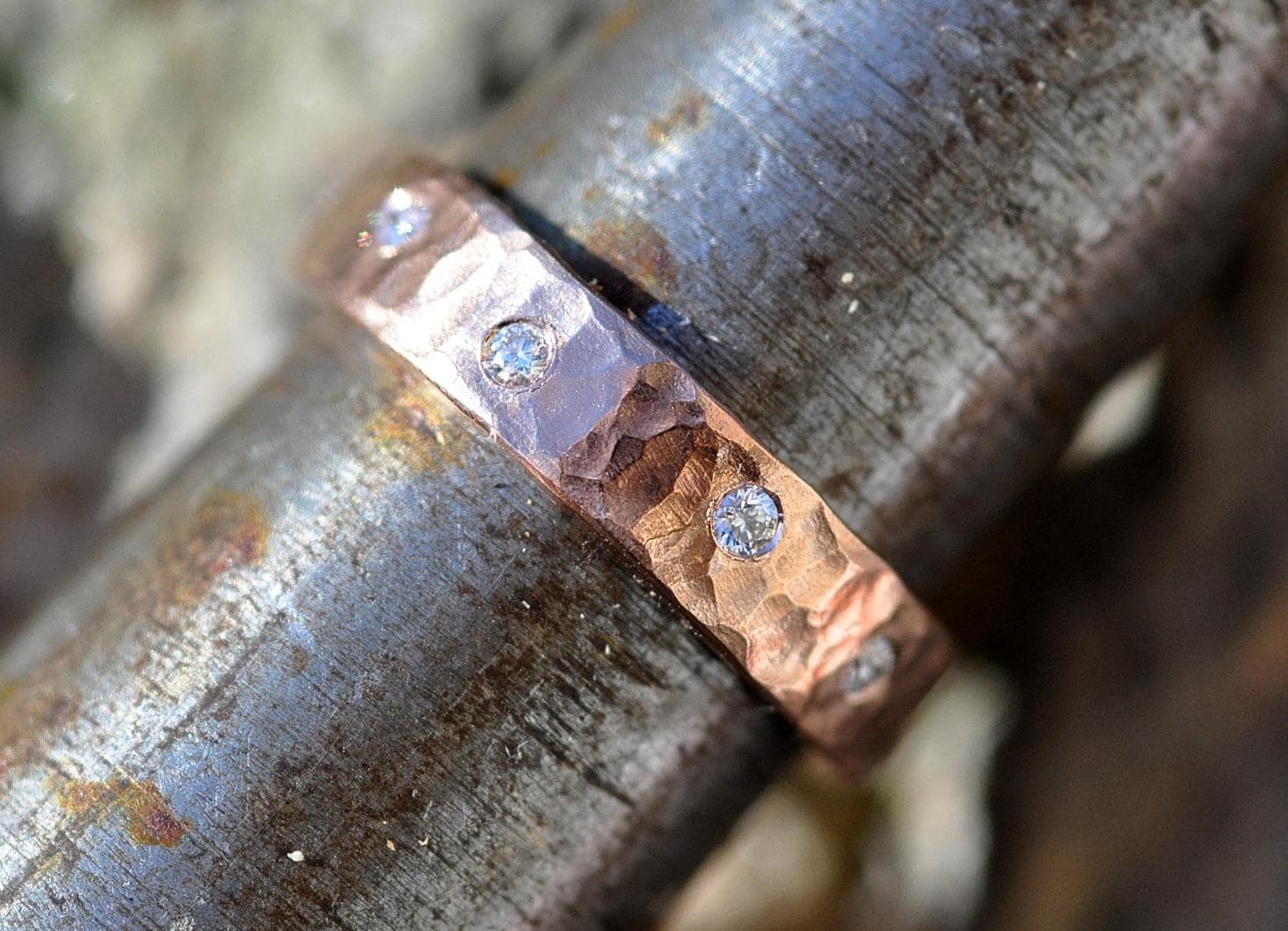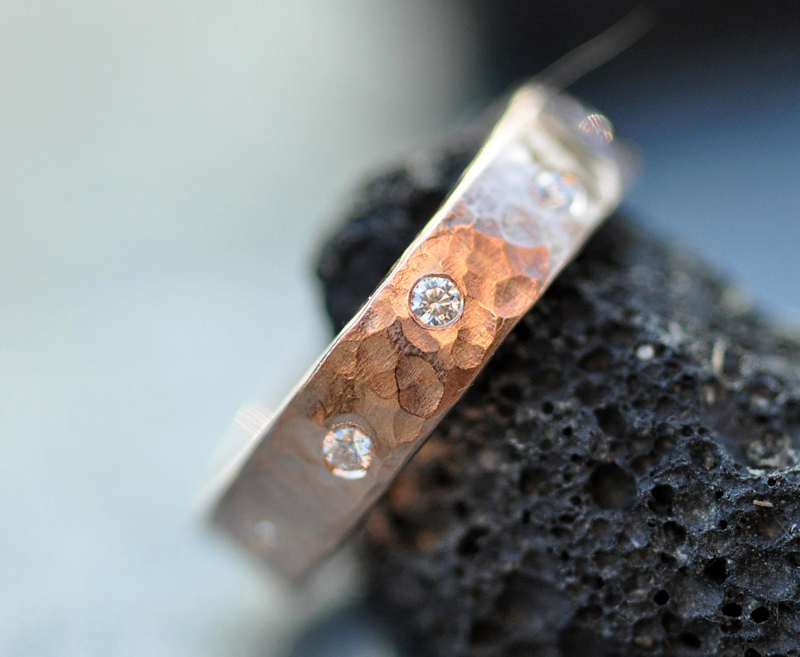 The ring band is 4mm wide x 1.25 mm thick, and can be given a hammered, brushed/matte, or high shine finish.